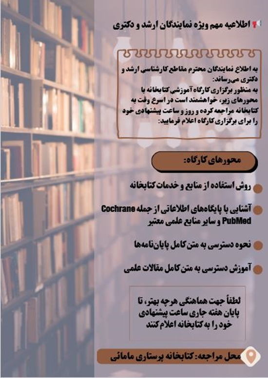 • گروه خبری : گروه خبری کتابخانه دانشکده پرستاری و مامایی اهواز,اطلاعیه های کتابخانه دانشکده پرستاری و مامایی